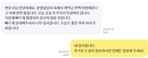 분양사는 변호사의 내용증명을 받자 즉시 계약금을 반환하겠다고 하였습니다