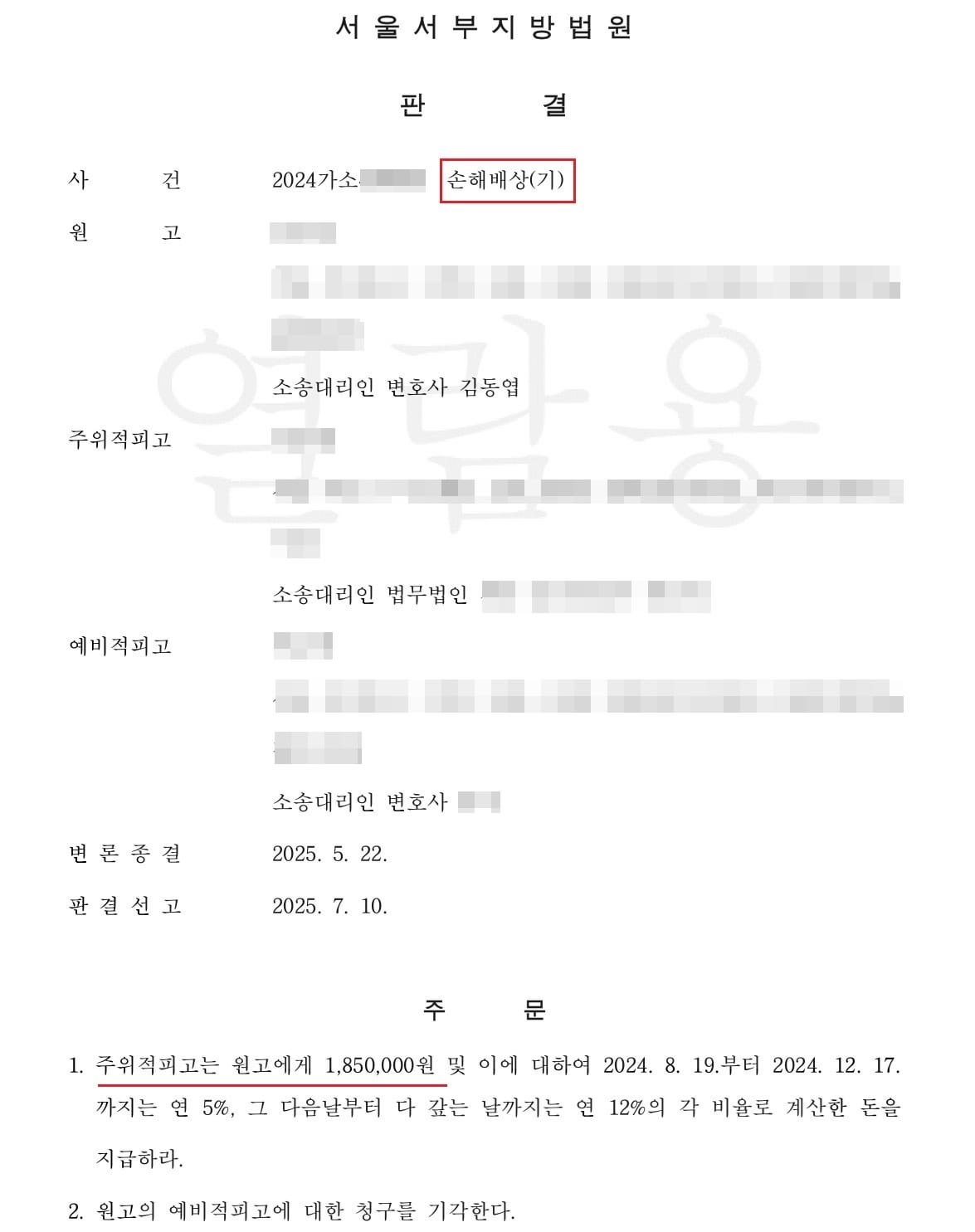 이에 고객님은 손해배상을 인정 받아 최종 승소할 수 있었습니다.