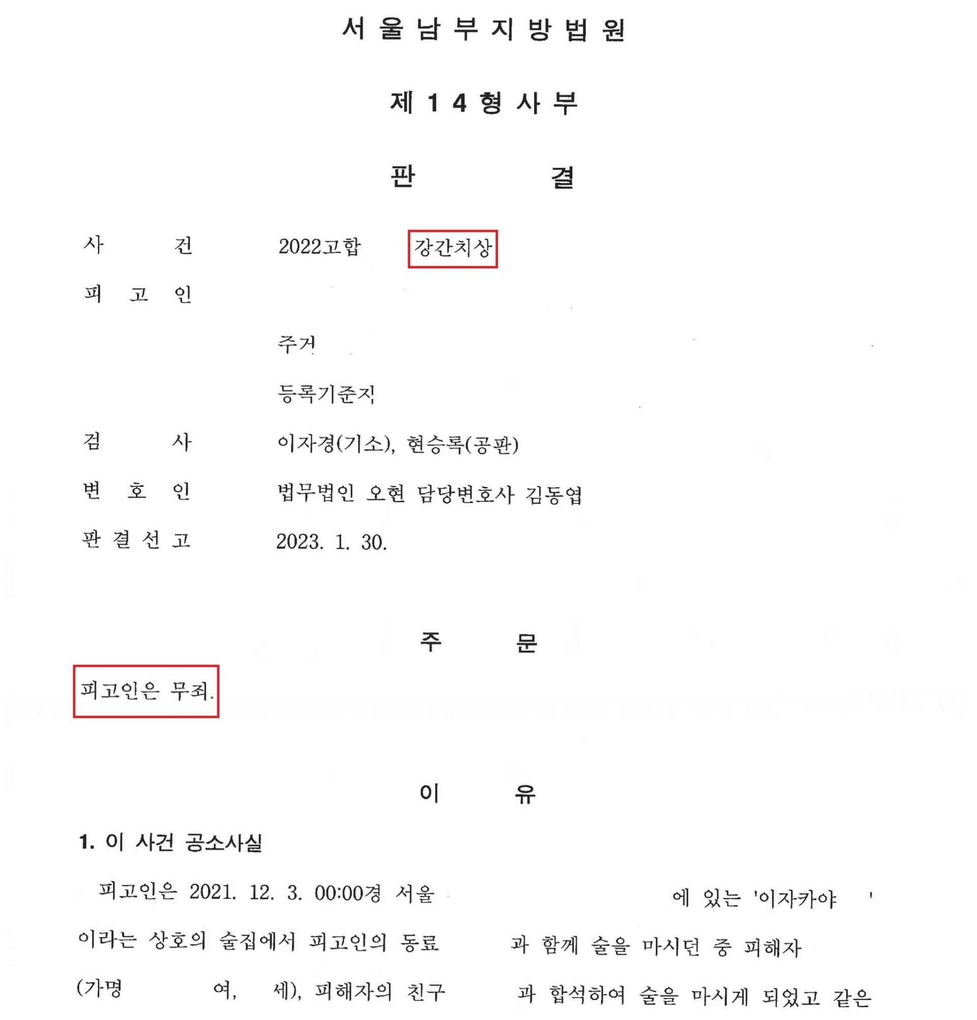 무엇보다 "상호 동의하에 진행된 성관계"라고 주장하면 무죄가 나올 것이라 생각합니다.